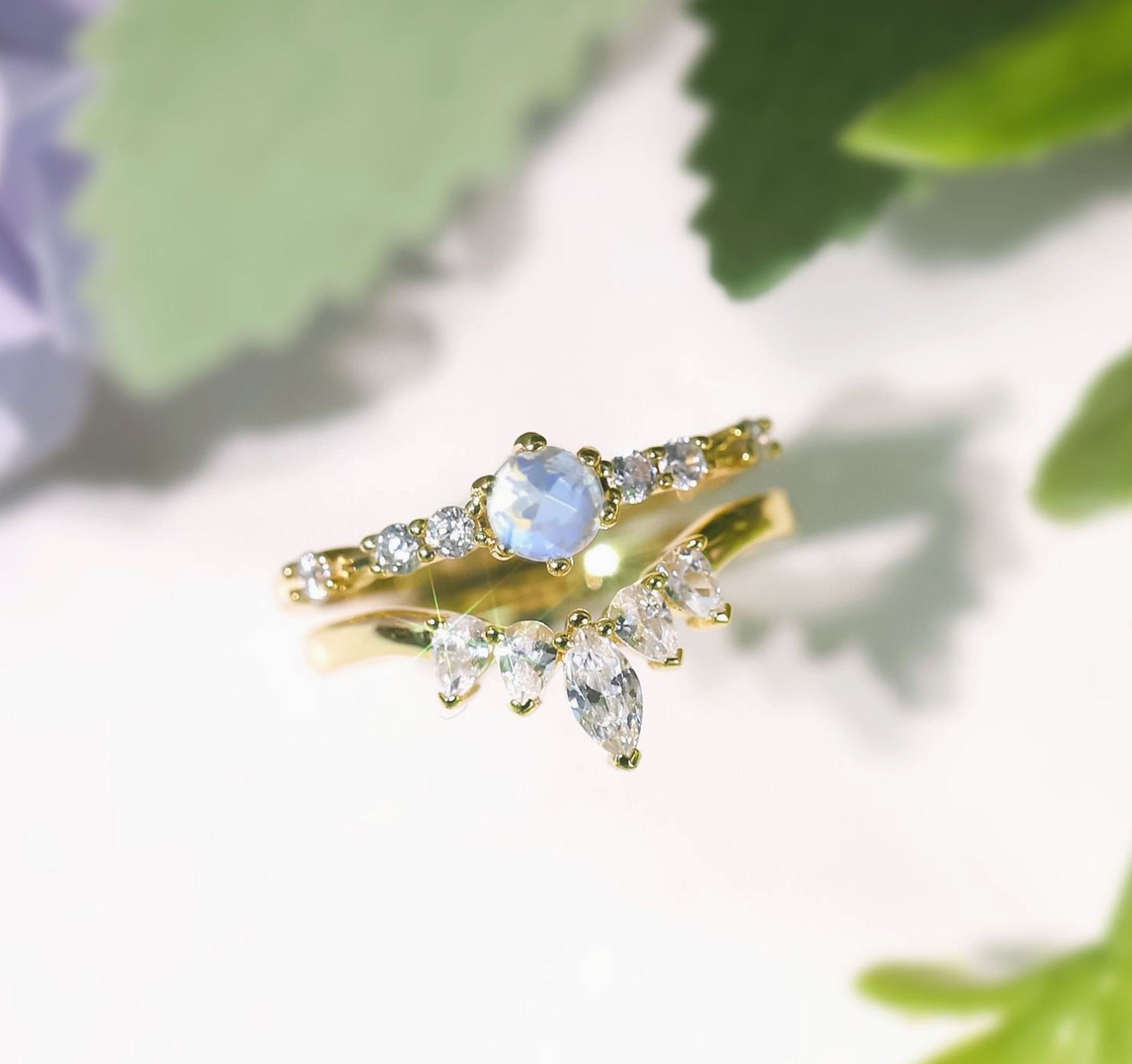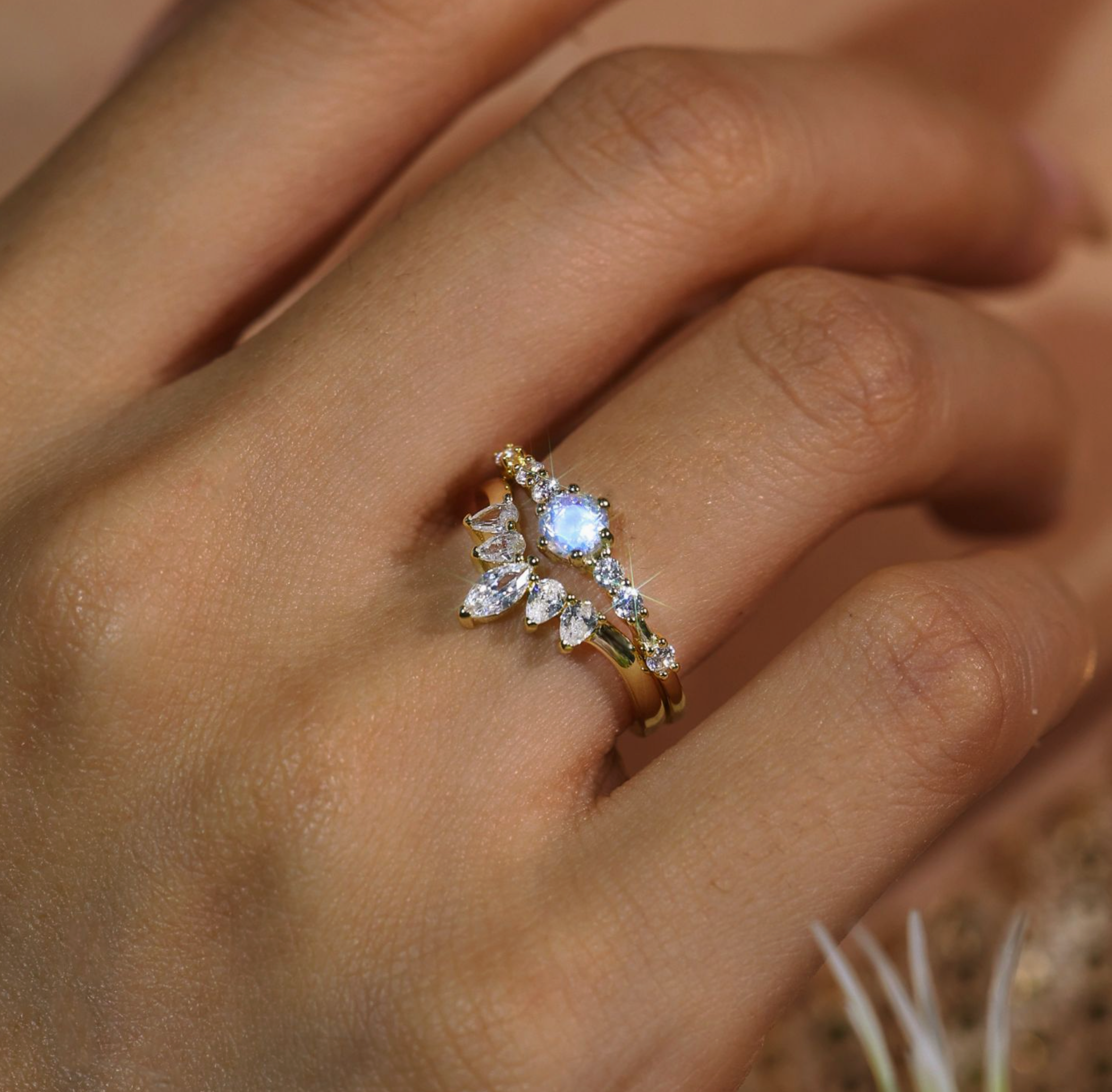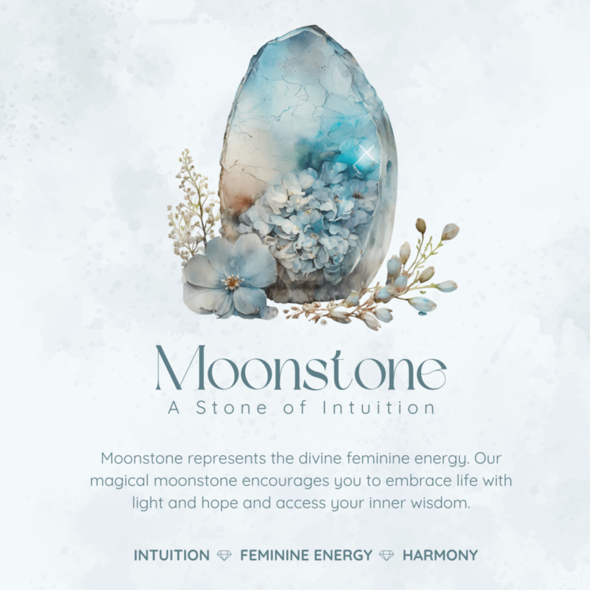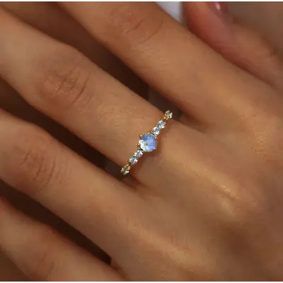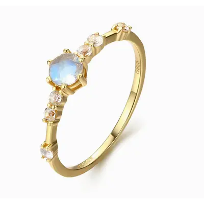 - Center Stone: 4mm round Moonstone