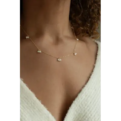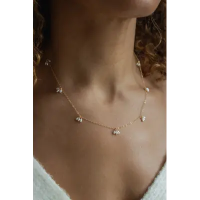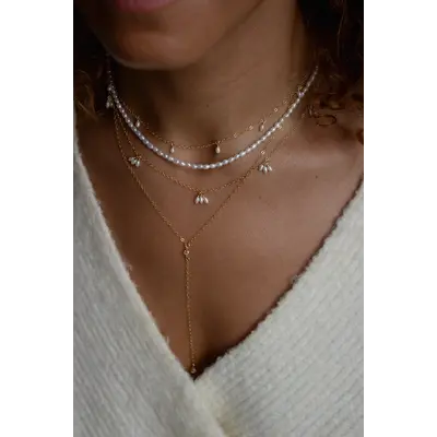 A dainty and minimal chain necklace with tiny freshwater pearl dangles. Looks amazing layered or on it's own.