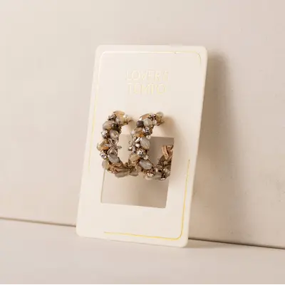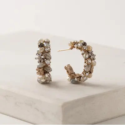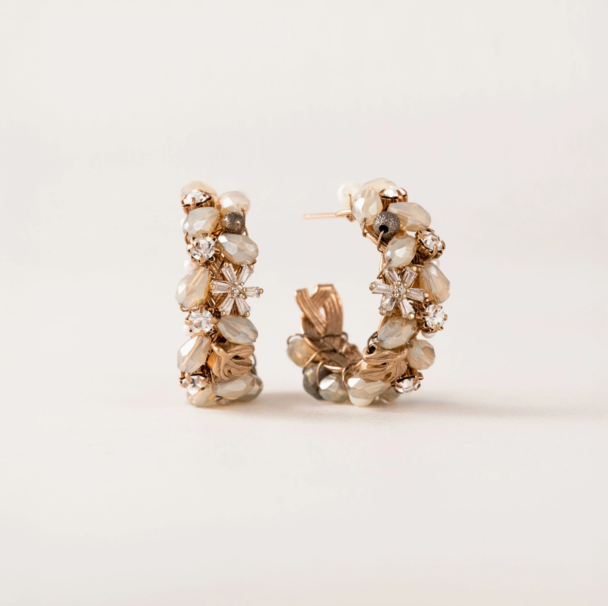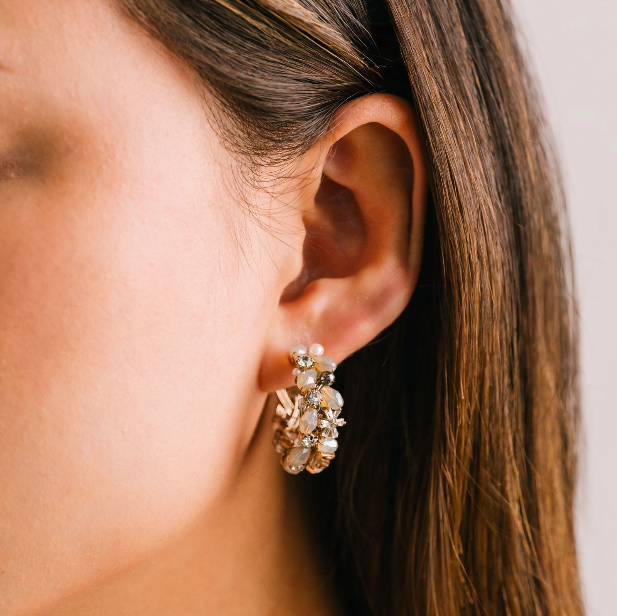 The artistry of nature, captured in a hoop. These exquisite earrings are bejewelled with light-catching crystals, pearls and beads.