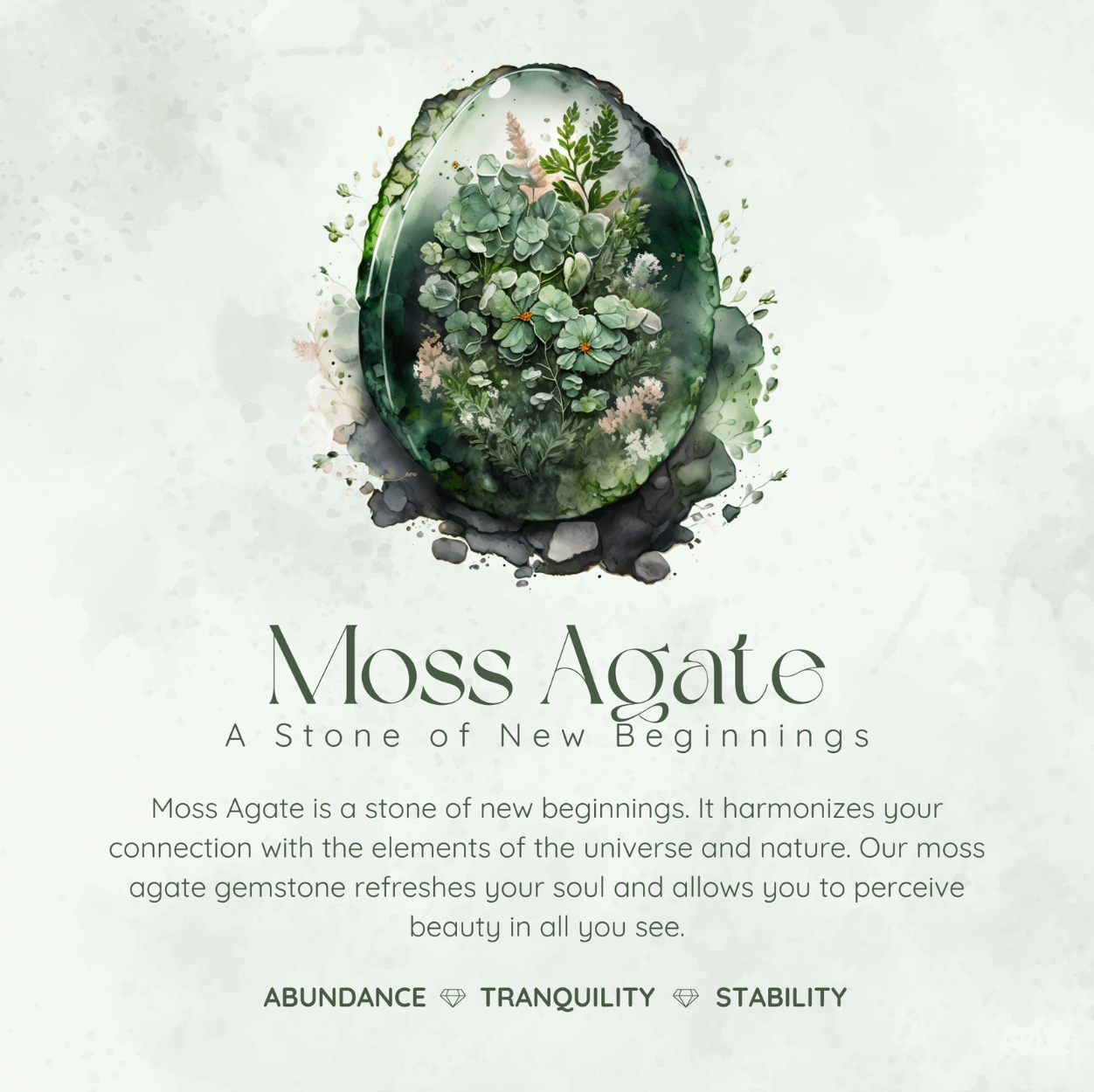 *Please be informed that your moss agate patterns are naturally distinct and unique from the portrayed picture, and you will never witness the same pattern in two gems. It is one of a kind with a unique story that only you can tell.