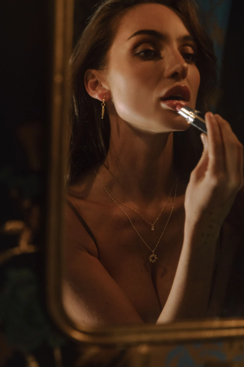 A baguette cut cubic zirconia crystal and a vintage inspired CZ charm brings beauty and sparkle to a gorgeous necklace designed with 2 layers of delicate chains. Mixed metal perfection.