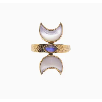 The Moonlight Goddess Ring symbolizes the goddess within each of us. It is a reminder to connect to the strong warrior within. Channeling the energy of the moon, this handcrafted Moonlight Ring brings a magical touch to any outfit or ring set.