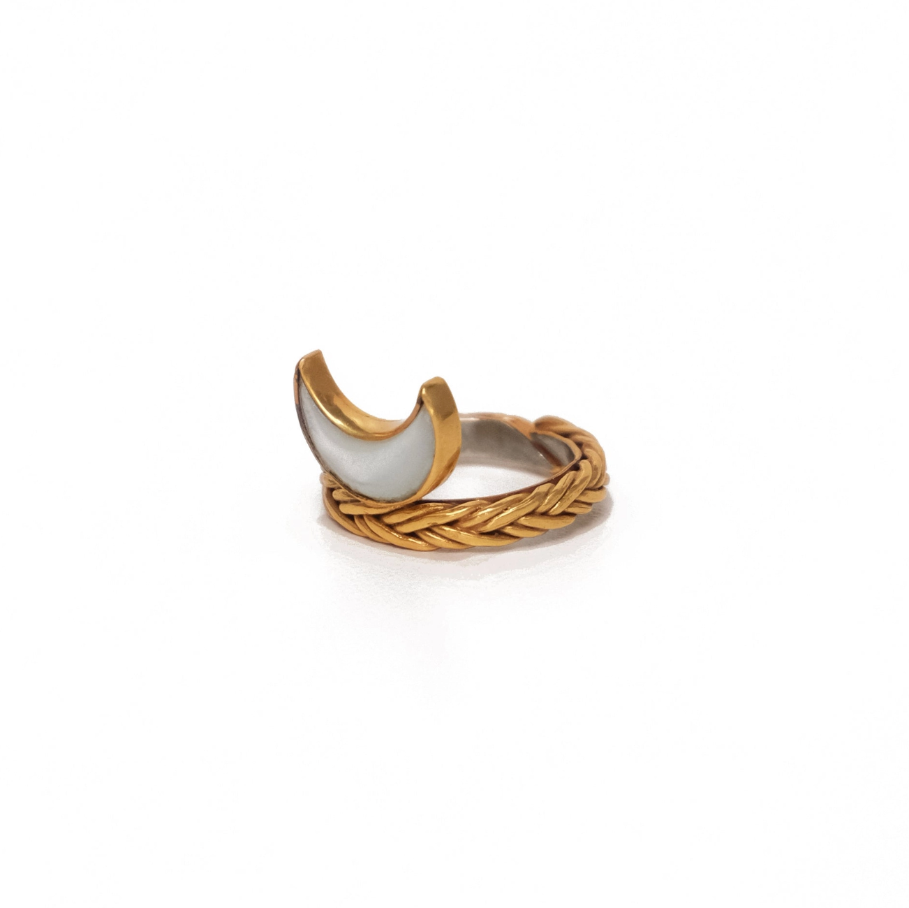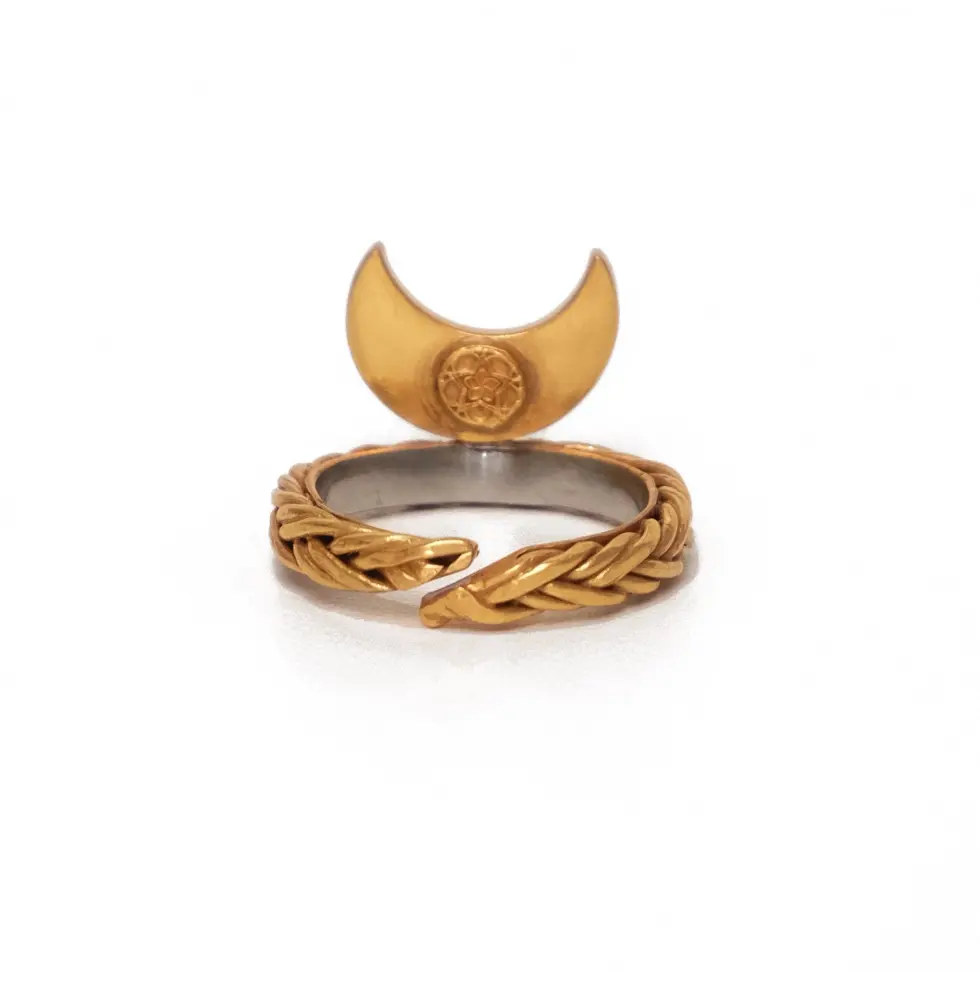 The handwoven braided design adds a touch of artistry, symbolizing interconnectedness and the cyclical nature of life. The shell moon, integrated for its healing properties, is believed to enhance intuition and feminine energy. Wearing "The BRAIDED LUNA Ring" invites not only abundance but also a harmonious blend of healing energies, creating a unique and meaningful connection with the celestial rhythms.