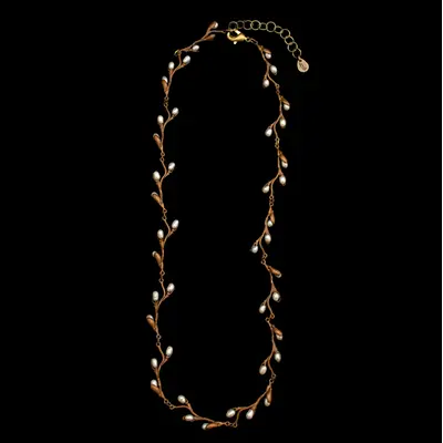 - Cast in oxidized bronze and accented with white freshwater pearls