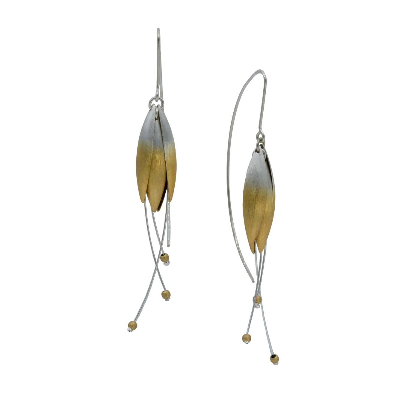 Unveil a luminous touch of nature with the MT 340VS earrings. These 3 1/4" long threaders from the Mysterium Collection capture the essence of unfolding "tulip petals" with a breathtaking silver ombre finish that softly gives way to radiant gold plating. The design is further enhanced by delicate silver threaders, tipped with small, shimmering beads, creating an enchanting visual flow. Lightweight and endlessly elegant, these earrings offer a unique blend of precious metals and organic inspiration, perfect for captivating attention.