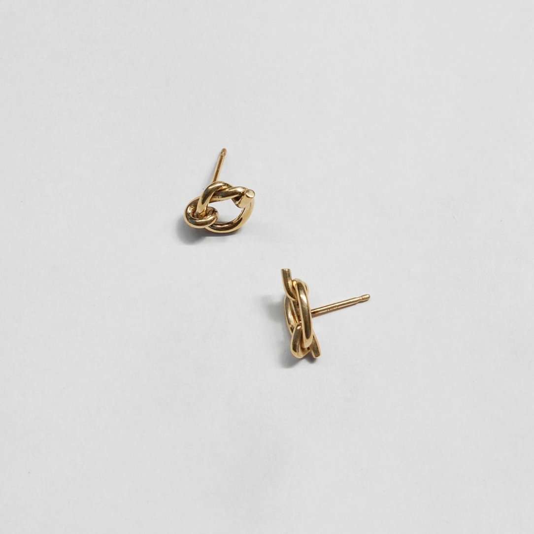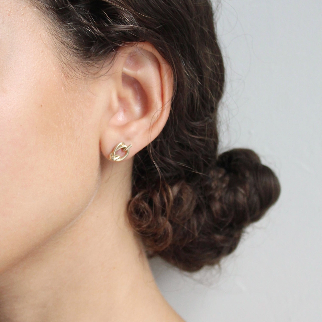 Perfectly asymmetrical stud earrings, individually hand sculpted in wax wire, then cast in recycled 14k gold. Earrings measure approximately 3/8" in diameter. Solid 14k gold posts and backs.