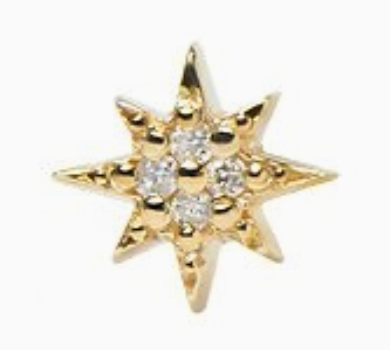 - Brilliant micro diamonds are set within a mini star and mounted on gold posts.