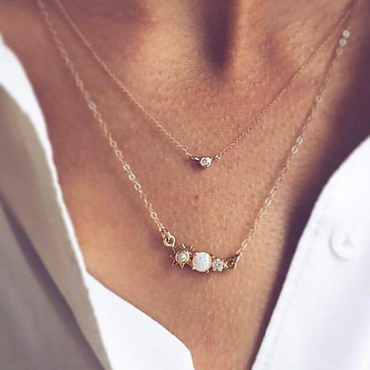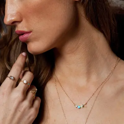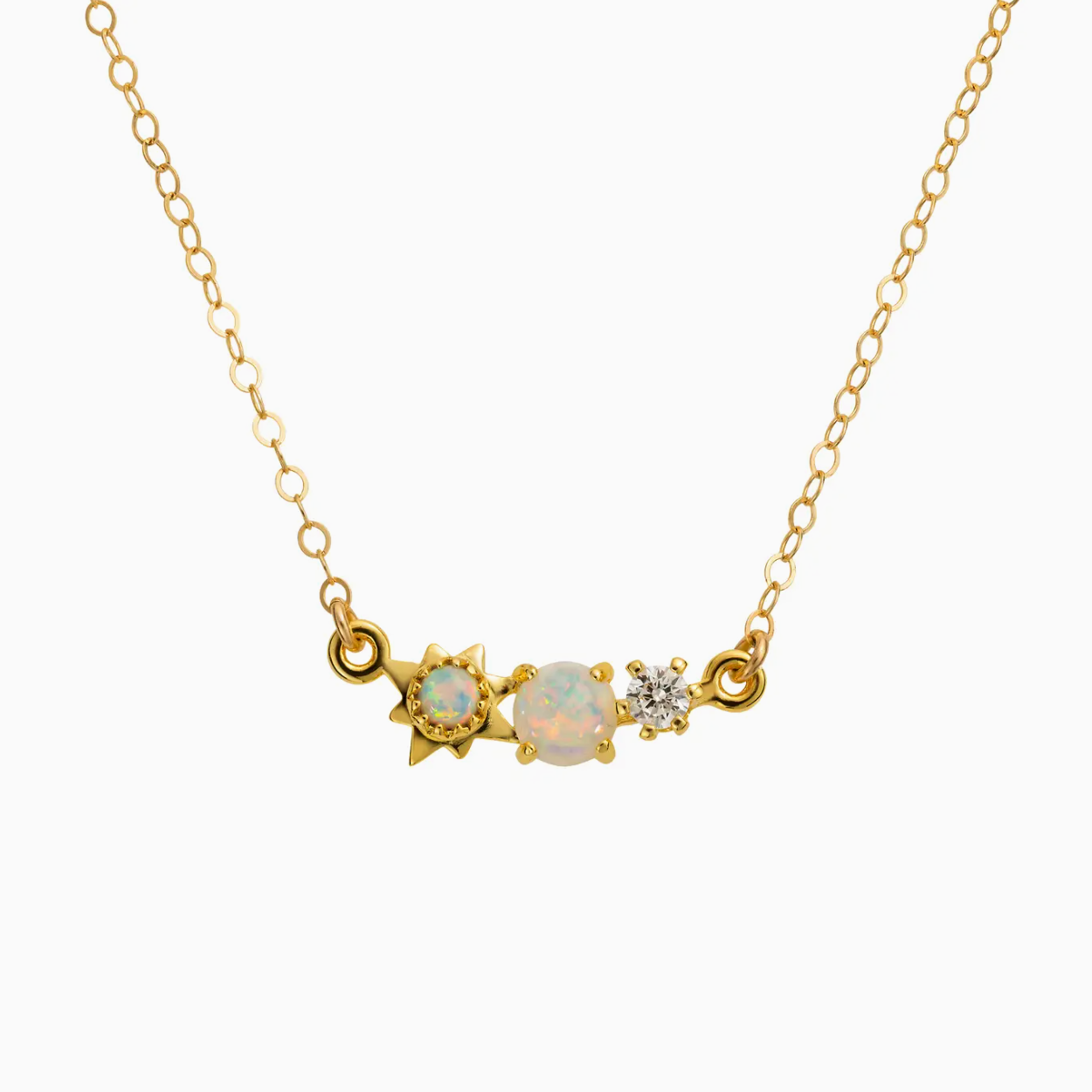 Remember the 3 wishes that are dearest to your heart with this dainty and inspirational opal and diamond necklace around your neck. A star, a moon and the sun all come together in this three wishes necklace to help manifest your deepest and most desired dreams.