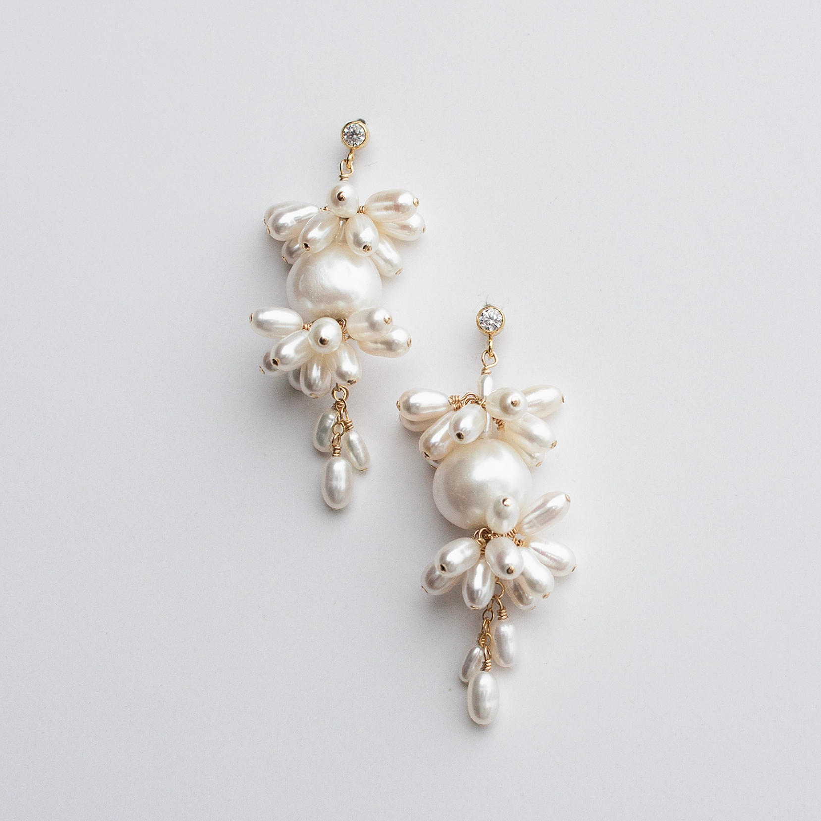 Completely handcrafted in our New York studio, the Fleur Earrings feature genuine freshwater pearl fleurettes, baroque pearls and cz posts. Lightweight and easy to wear.