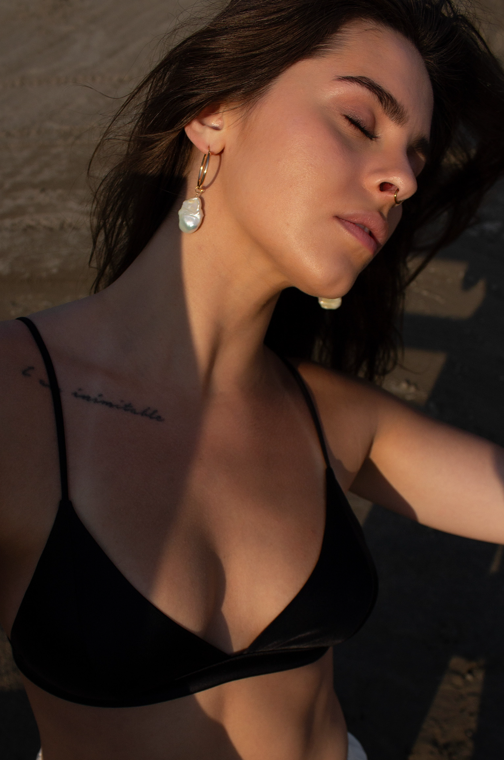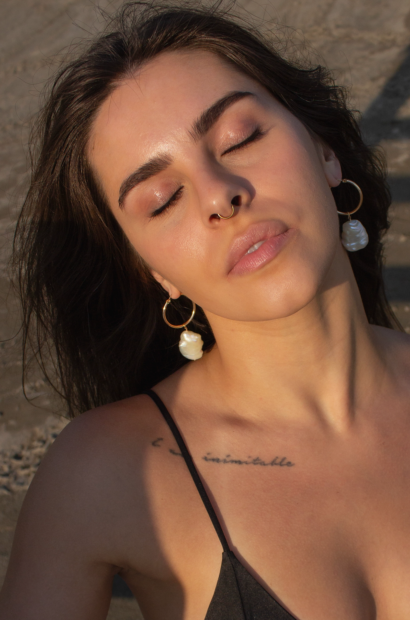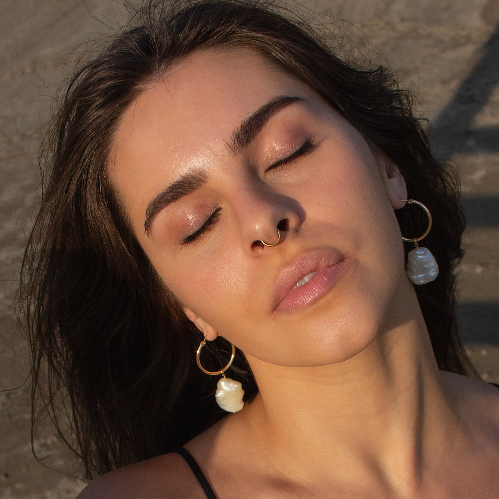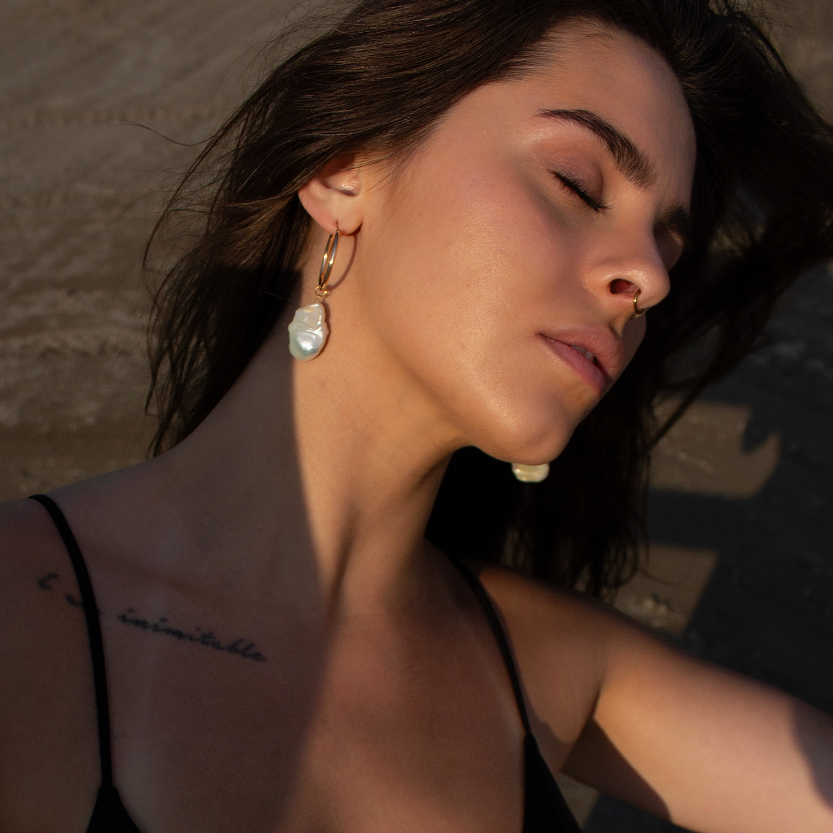 A simple everyday statement earring that goes with everything! Featuring large baroque pearls that dangle from a one inch hoop. Each pearl is a work of art.