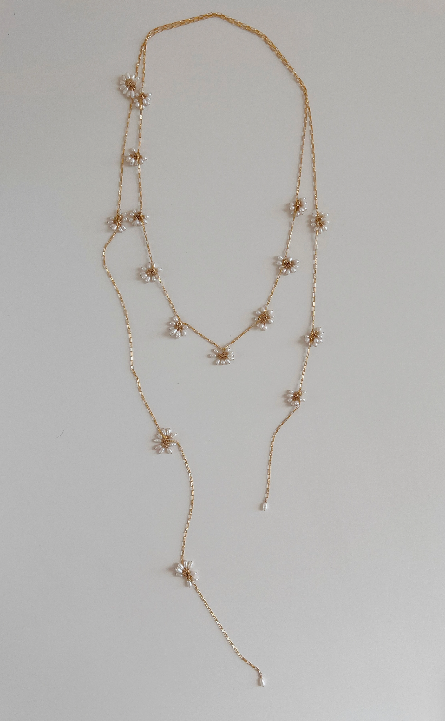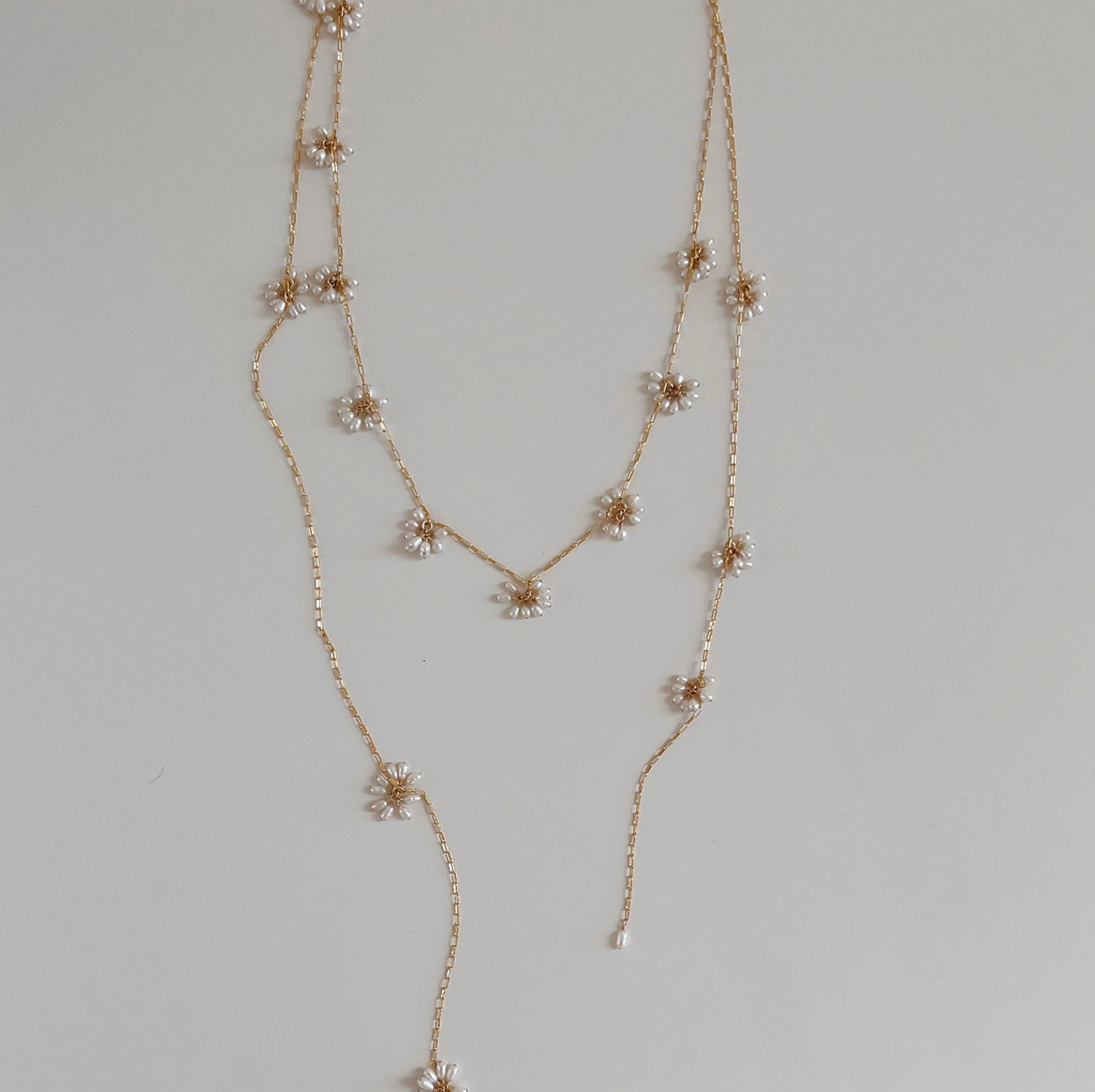 Designed to be worn multiple ways - the Fleurette Wrap Necklace features 50 inches of handcrafted freshwater pearl clusters and 14k gold filled or sterling silver chain. Wrap around your neck in the front and cross the ends, or let them dangle freely. This necklace also looks great as a back drop necklace. There is no clasp so it's the perfect piece to create your own look with!