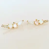 This cohesive mix of gemstones make for the perfect, edgy moonstone and opal ear climber. Put these gold ear climbers in like a regular earring and then swing them up for a bold and feminine look.