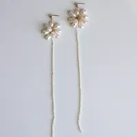 Inspired by a simple floral stem, these earrings gracefully fall from cubic zirconia posts. The ends feature a delicate strand of seed pearls that effortlessly sweep your shoulders. Lightweight and easy to wear.