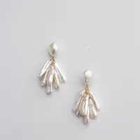 Inspired by swans, these earrings, composed of genuine freshwater pearls, gracefully sway mimicking the look of feathers. Lightweight and easy to wear, they are suspended from a baroque pearl stud.