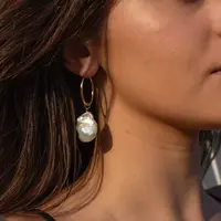 A simple everyday statement earring that goes with everything! Featuring large baroque pearls that dangle from a one inch hoop. Each pearl is a work of art.