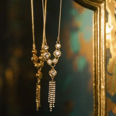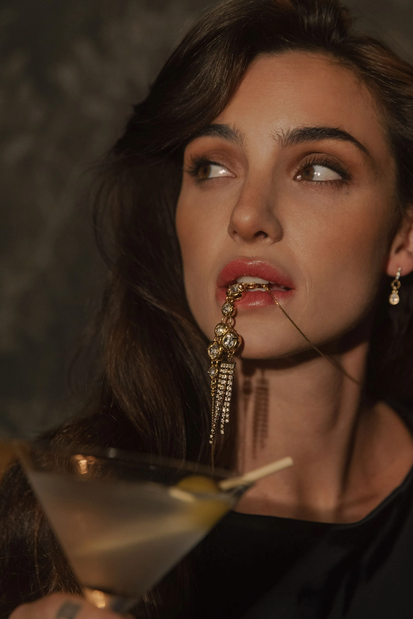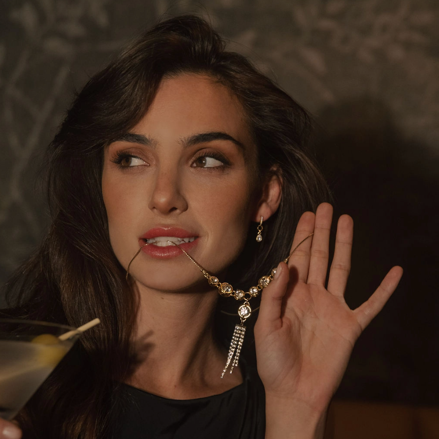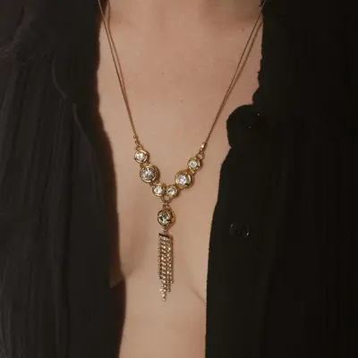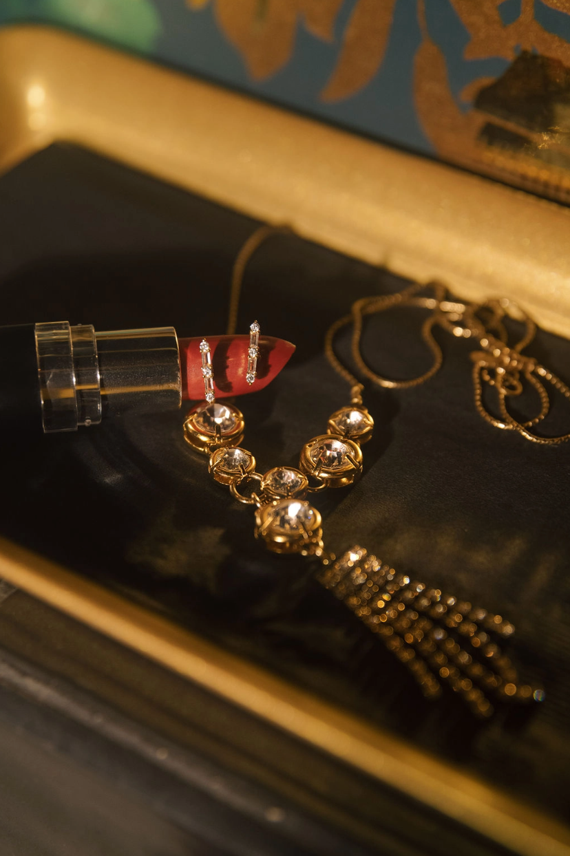 Turn heads with this stunning limited edition statement piece. Long and sexy, this head-turner features cubic zirconia crystals mixed with rich gold. It's the perfect accessory if you're looking for something fun and different to elevate your outfit. Don't miss out on this exclusive design!