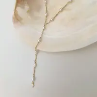 The Dripping Freshwater Pearl Necklace is composed of 4mm freshwater rice pearls separated by 14k gold filled or sterling silver dainty bars. A 3 1/2" matching drop elegantly flows into mid-air. Due to the nature of handmade, each one is slightly different and unique to you.
