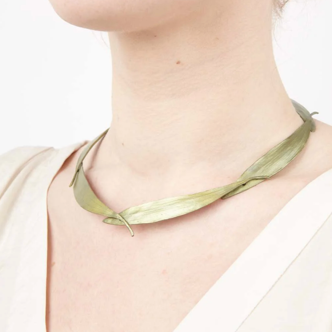 Unveil your love for nature-inspired jewelry with our Eucalyptus 6 Leaf Collar. Designed by the renowned Michael Michaud, this piece captures the beauty and intricate detail of eucalyptus leaves. Cast in bronze with a hand patina finish, it reflects the brand's commitment to creating molds directly from botanical elements, resulting in a piece that is as true to nature as it is elegant. This collar is a testament to the exquisite craftsmanship and attention to detail that Michael Michaud Jewelry is known for. Wear it to make a statement and celebrate the beauty of nature.
