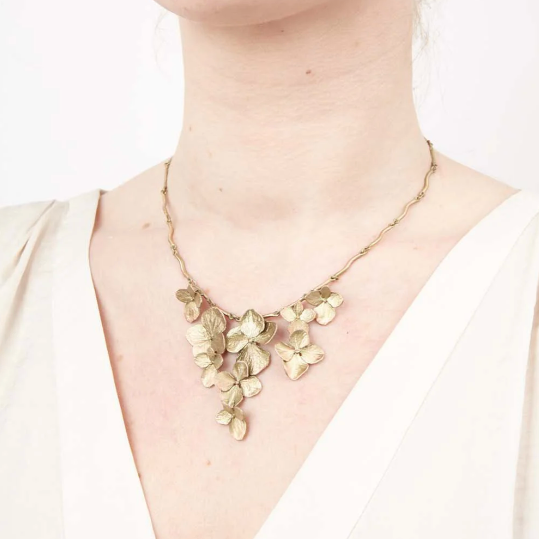 - Cast in bronze with Hydrangea flowers featuring an antique bronze over copper finish
