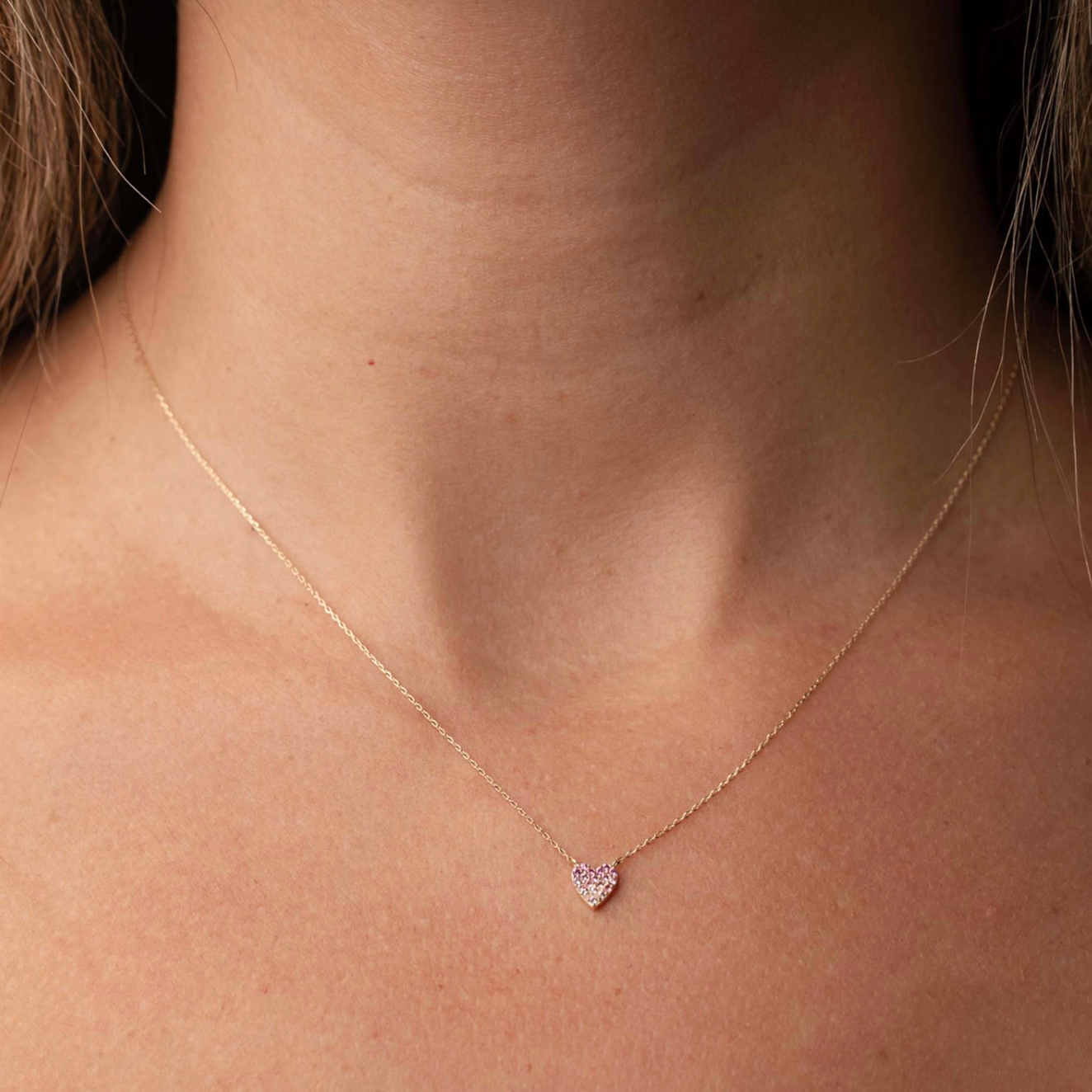Solid 14K Pink Sapphire Heart Necklace