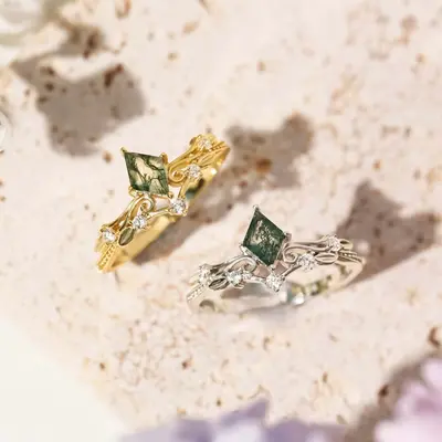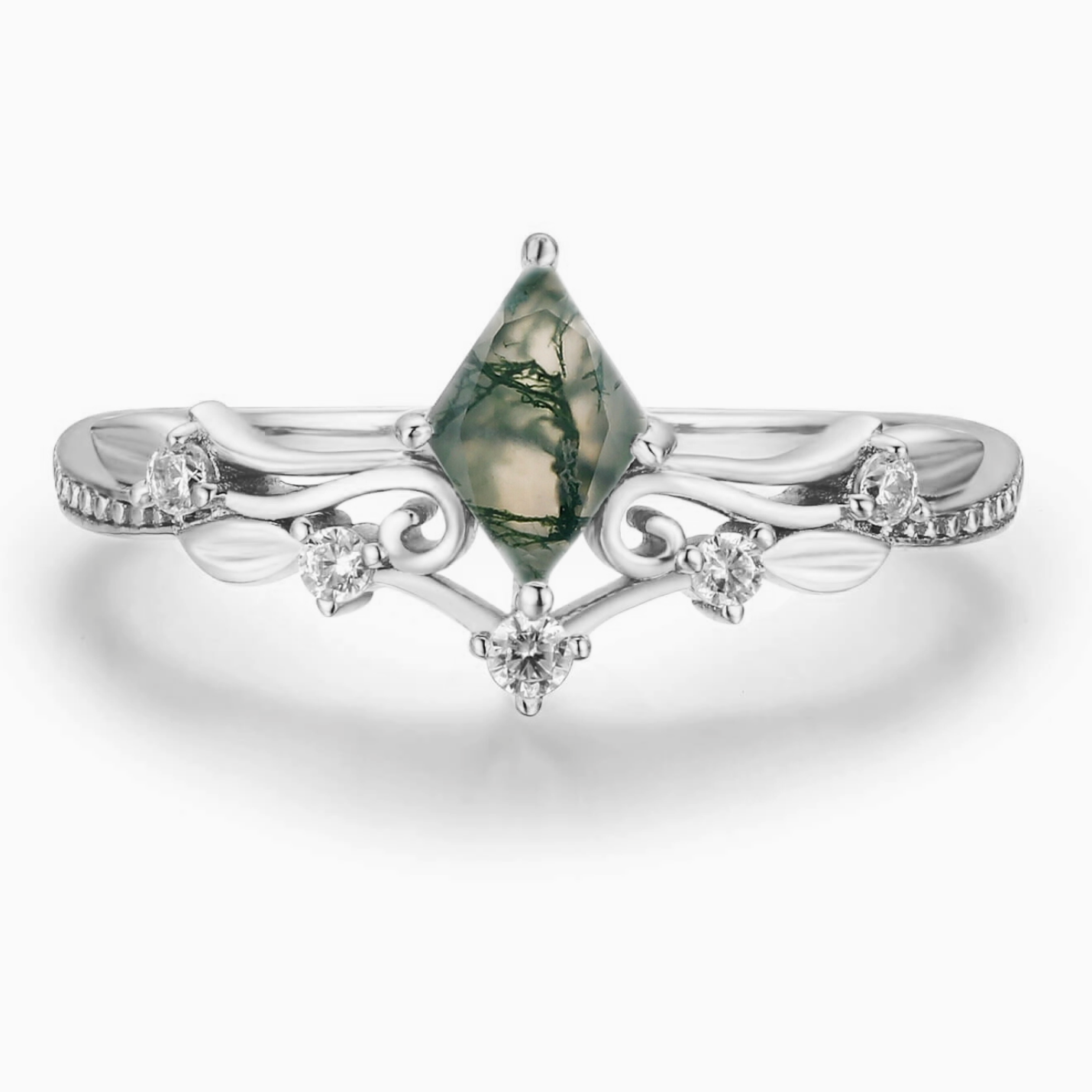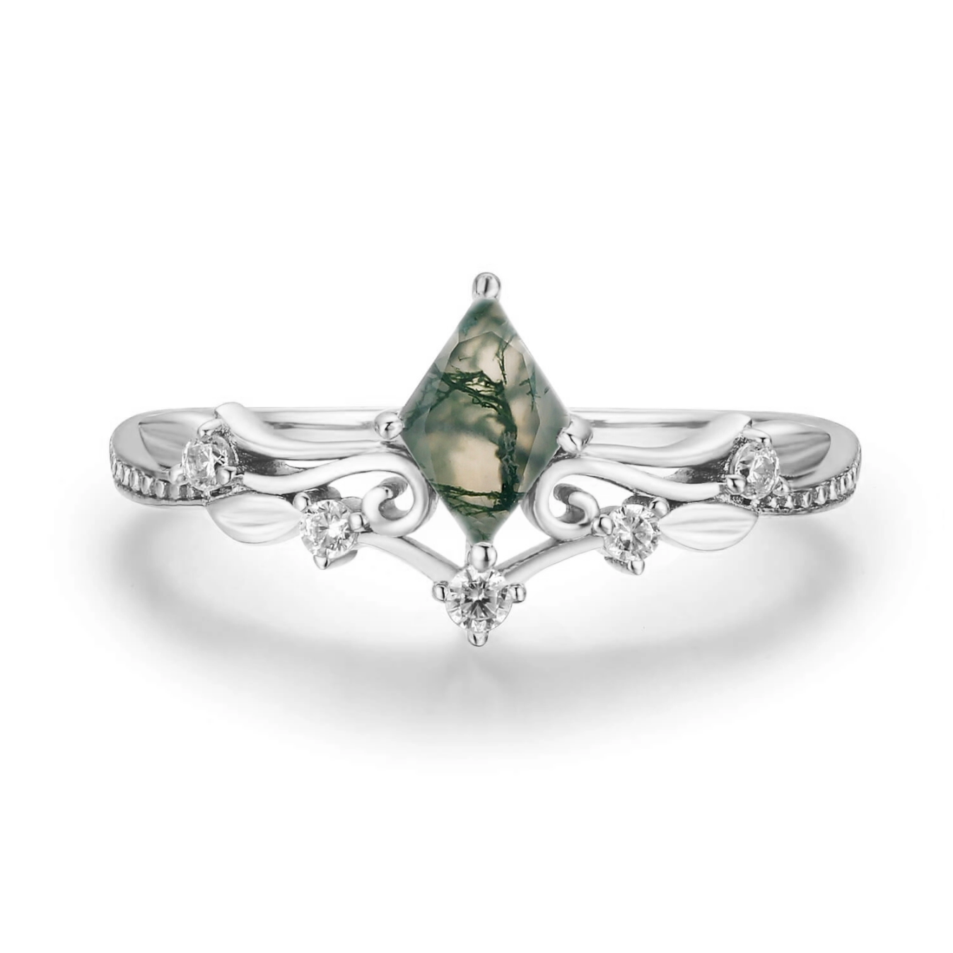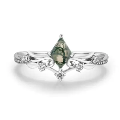 ✦ Center Stone: 5x7 rhombus Moss Agate