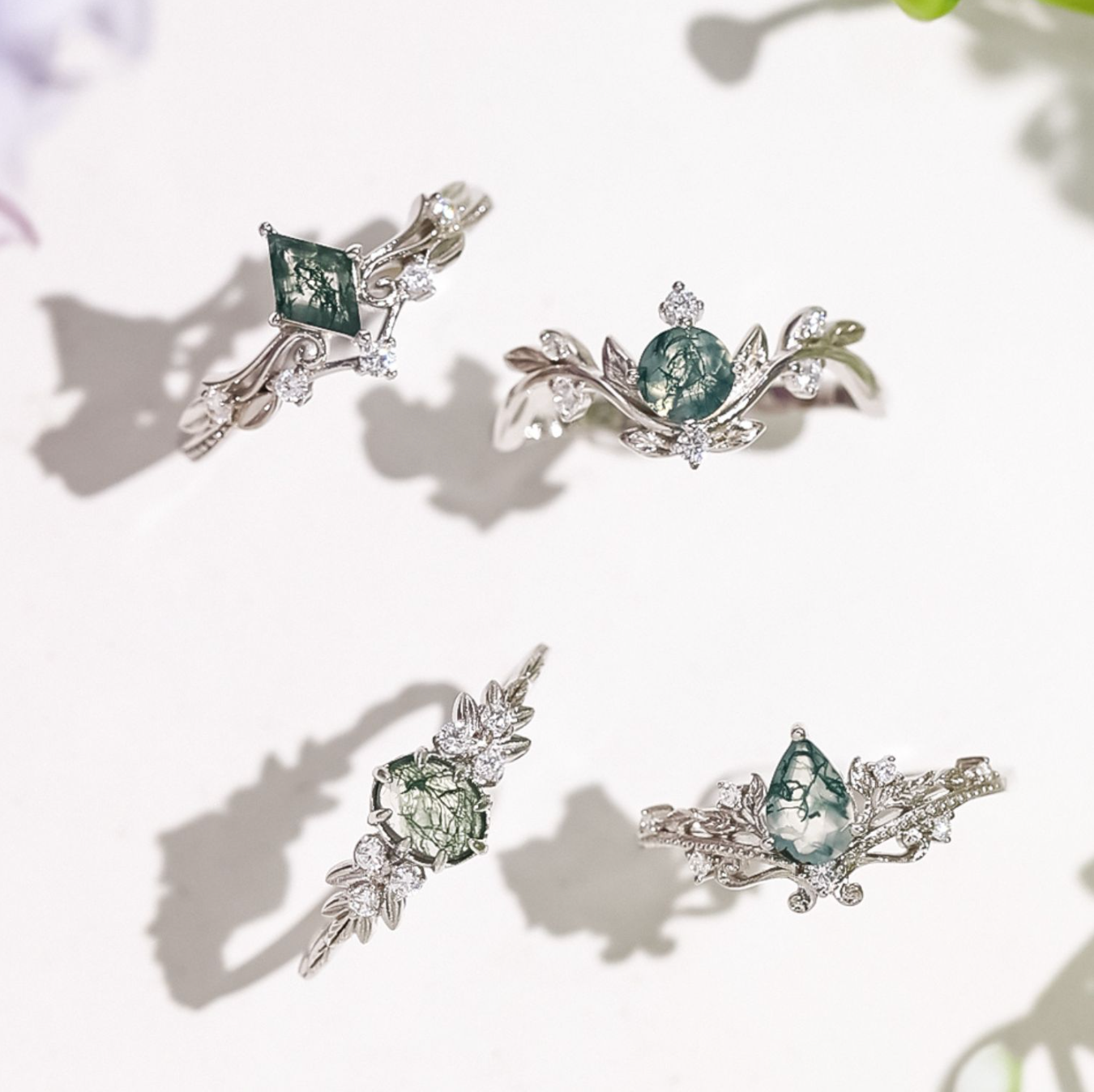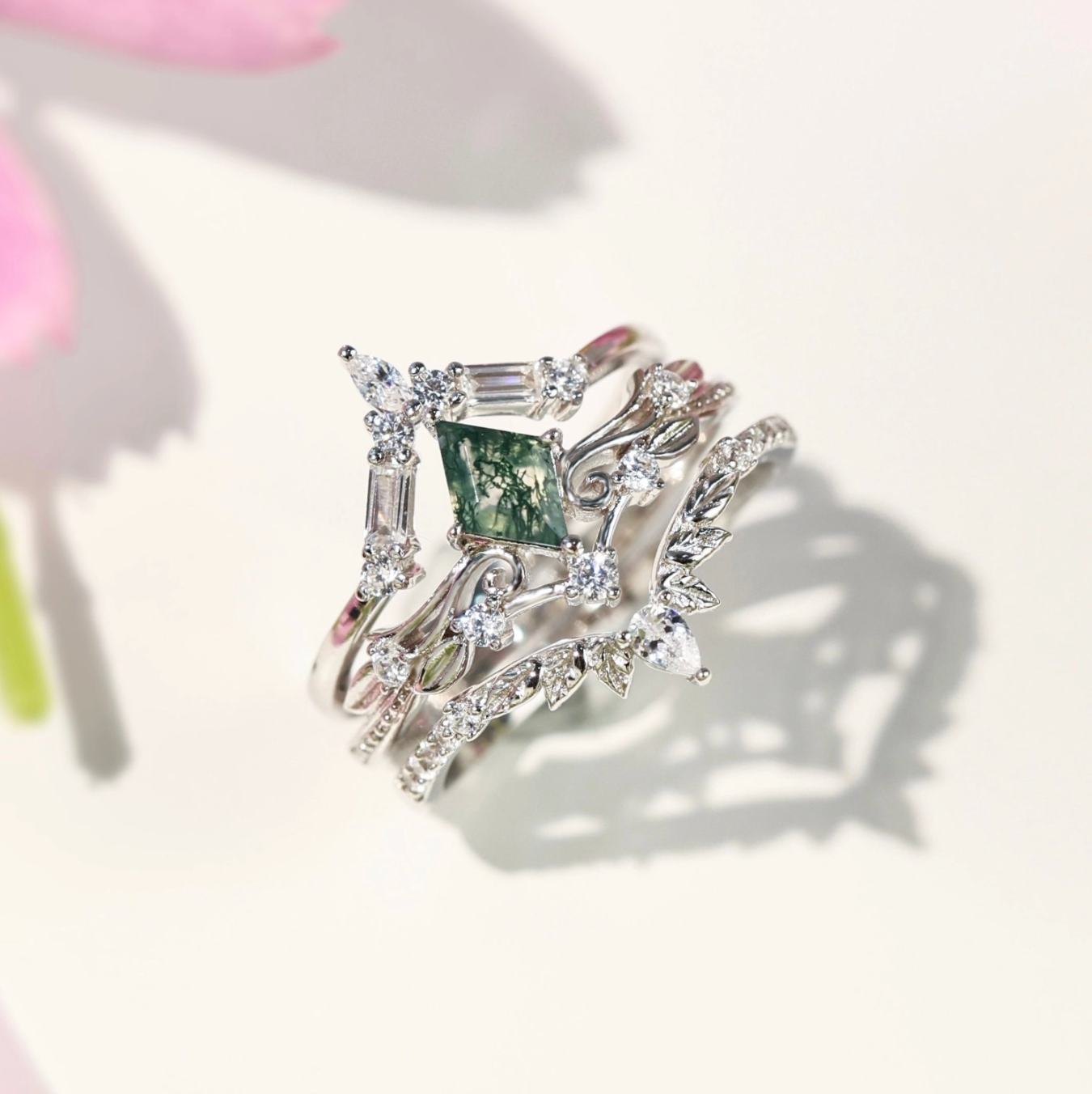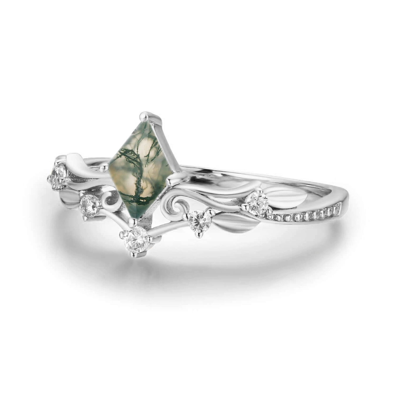 ✦ Center Stone: 5x7 rhombus Moss Agate